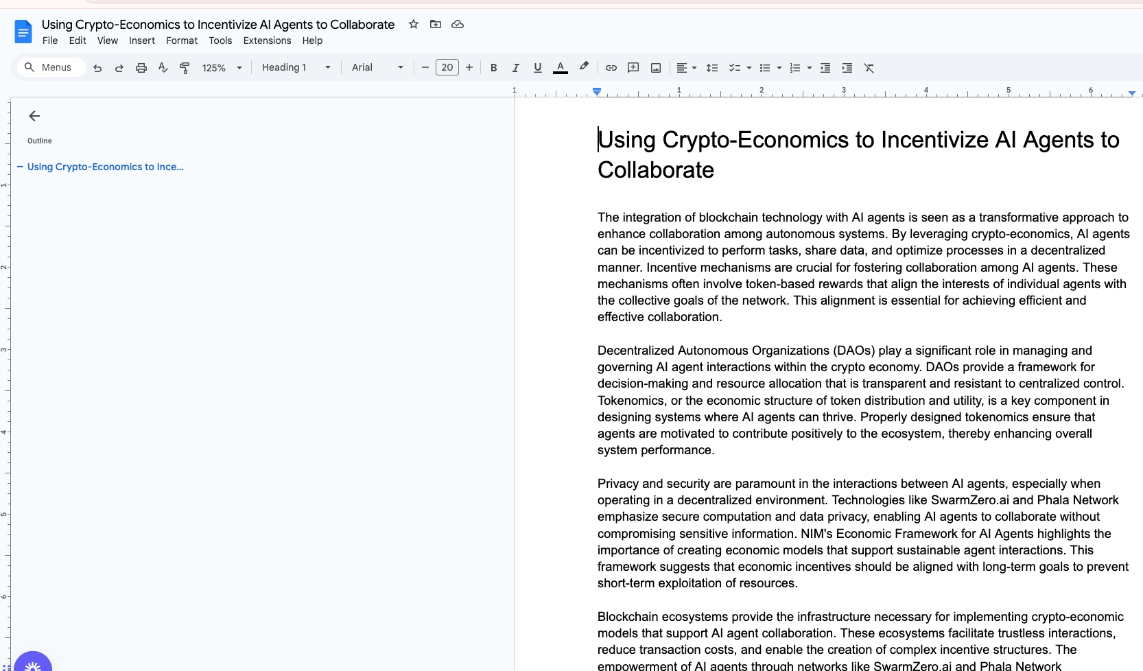 Research crypto-economics and AI agent collaboration, publish to Google Docs